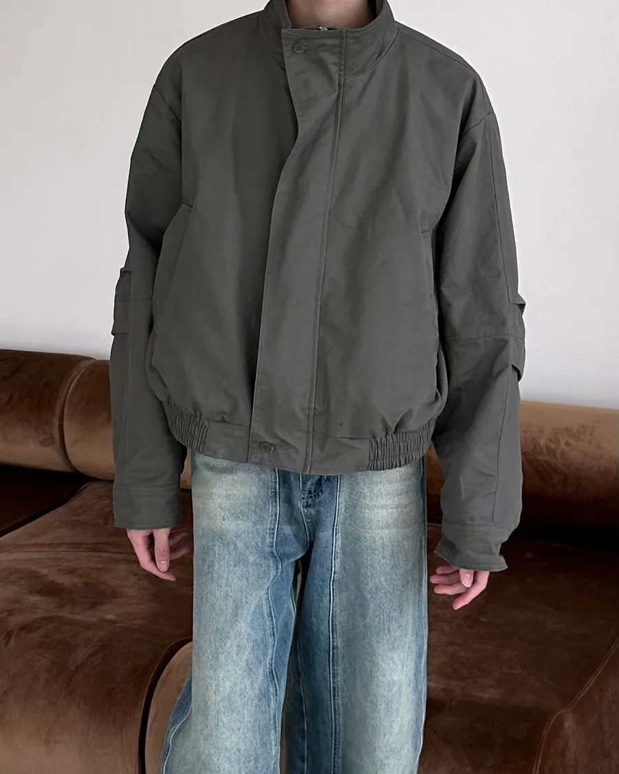 短版防風夾克/雙拉鏈包脖領/下擺鬆緊收邊/立體設計剪裁