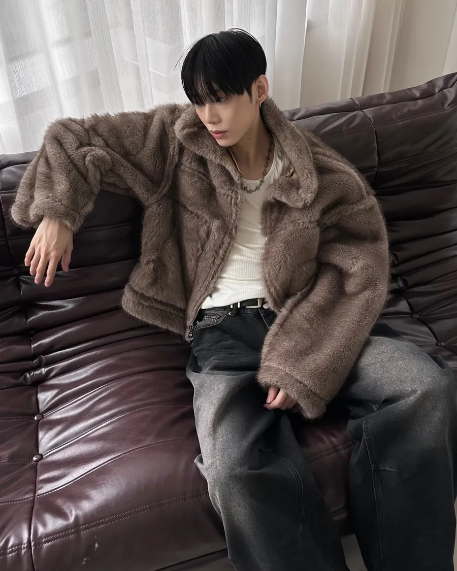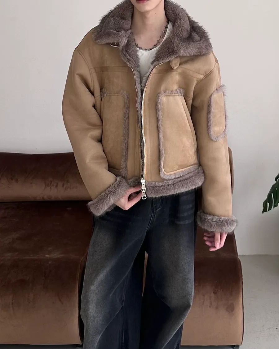 一件兩件/座山雕氛圍感/領口綁帶設計/麂皮毛邊夾克/短版衣長