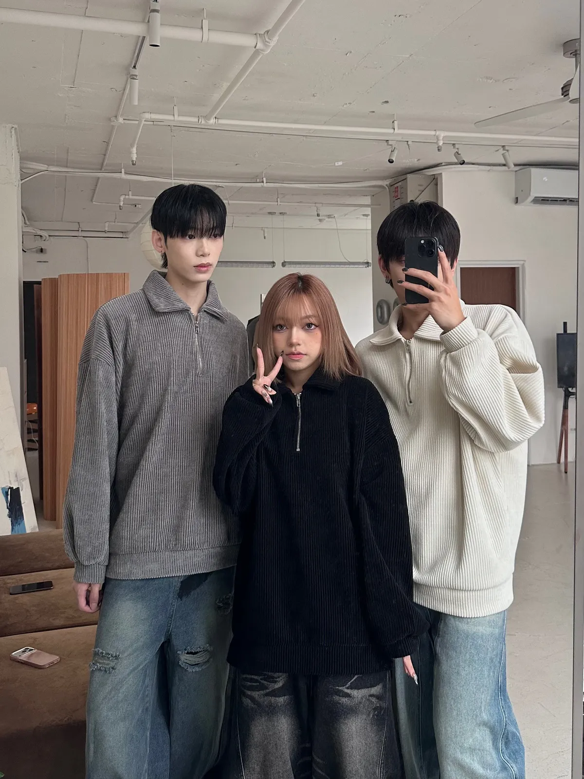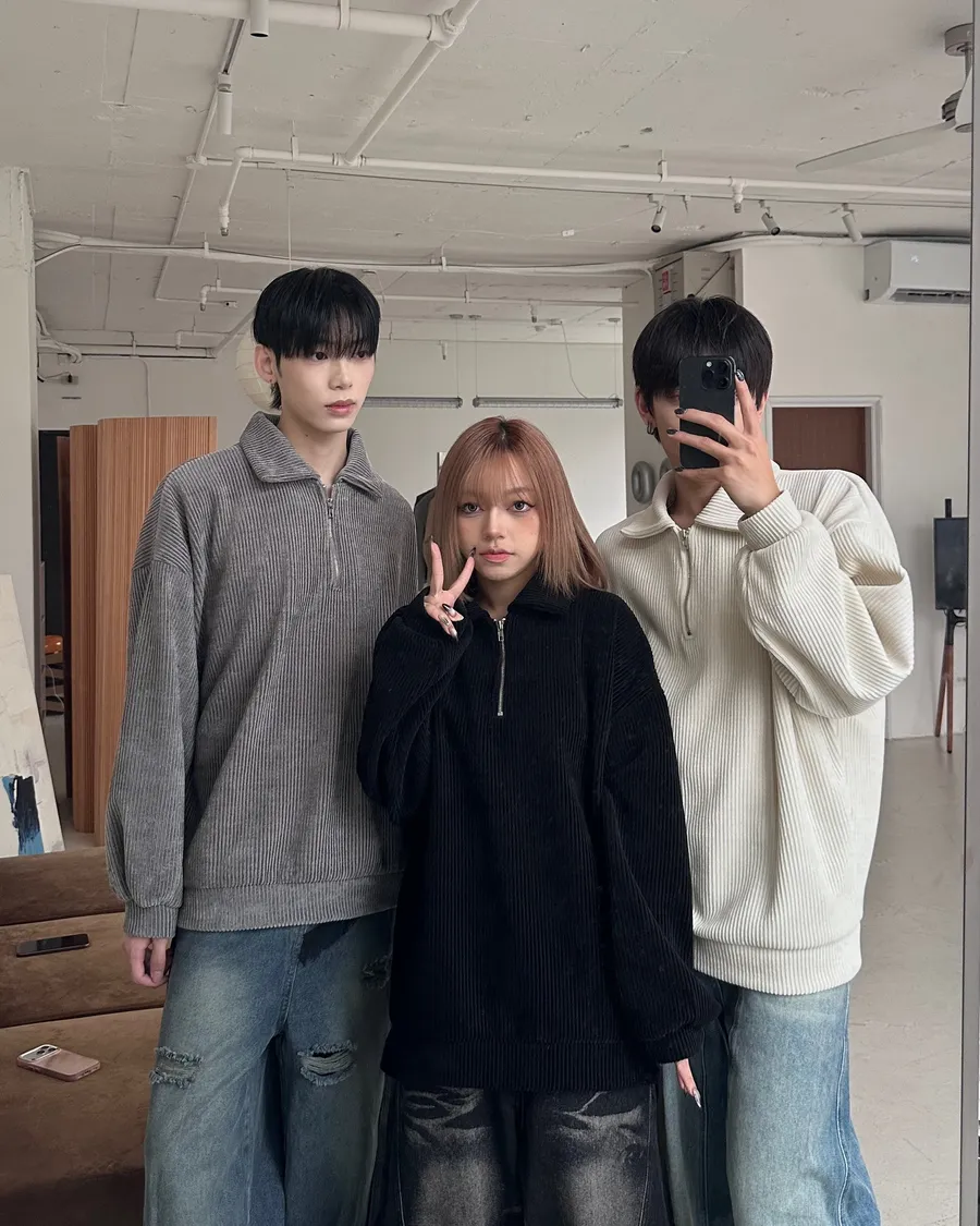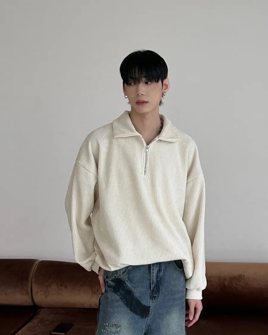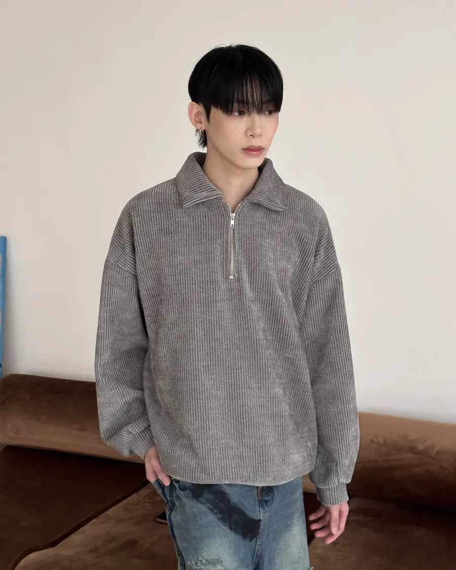 燈絨面料/半拉鏈翻領設計/無性別打扮/寬鬆版型